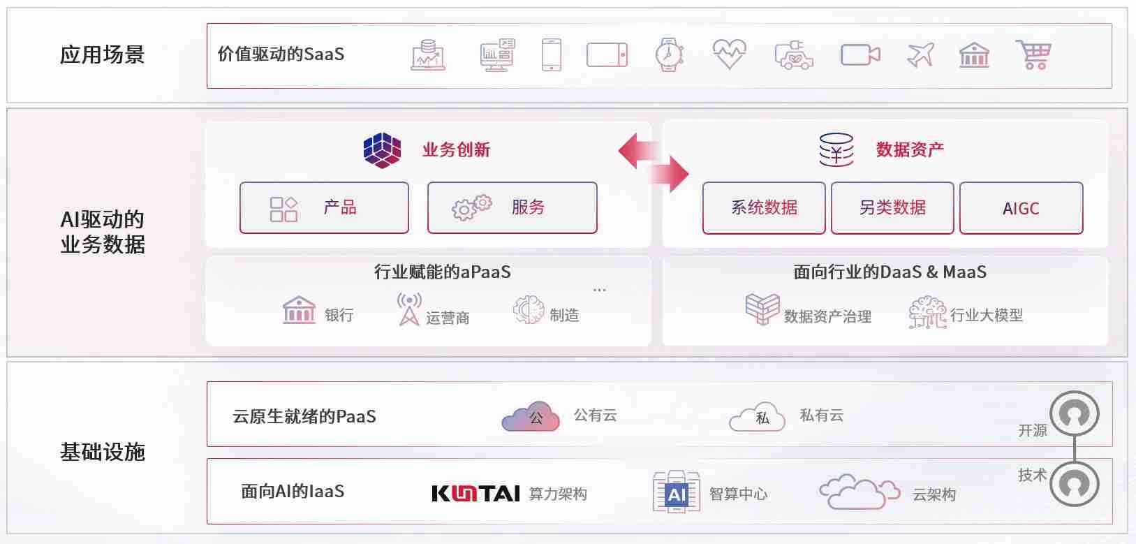数字时代,,,围绕企业数字化转型的关键要素,,,,uppay钱包数码开创性的提出数云融合战略和技术体系框架,,,,着力在云原生、、、数字原生、、AI原生和信创产业上架构产品和服务能力,,为处在不同数字化转型阶段的快消零售、、、、汽车、、金融、、医疗、、政企、、教育、、运营商等行业客户提供泛在的敏捷IT能力和融合的数据驱动能力,,,构建跨界融合创新的数字业务场景和新业务模式,,,助力企业级客户建立面向未来的核心能力和竞争优势,,全面推动社会的数字化、、、、智能化转型升级。。。